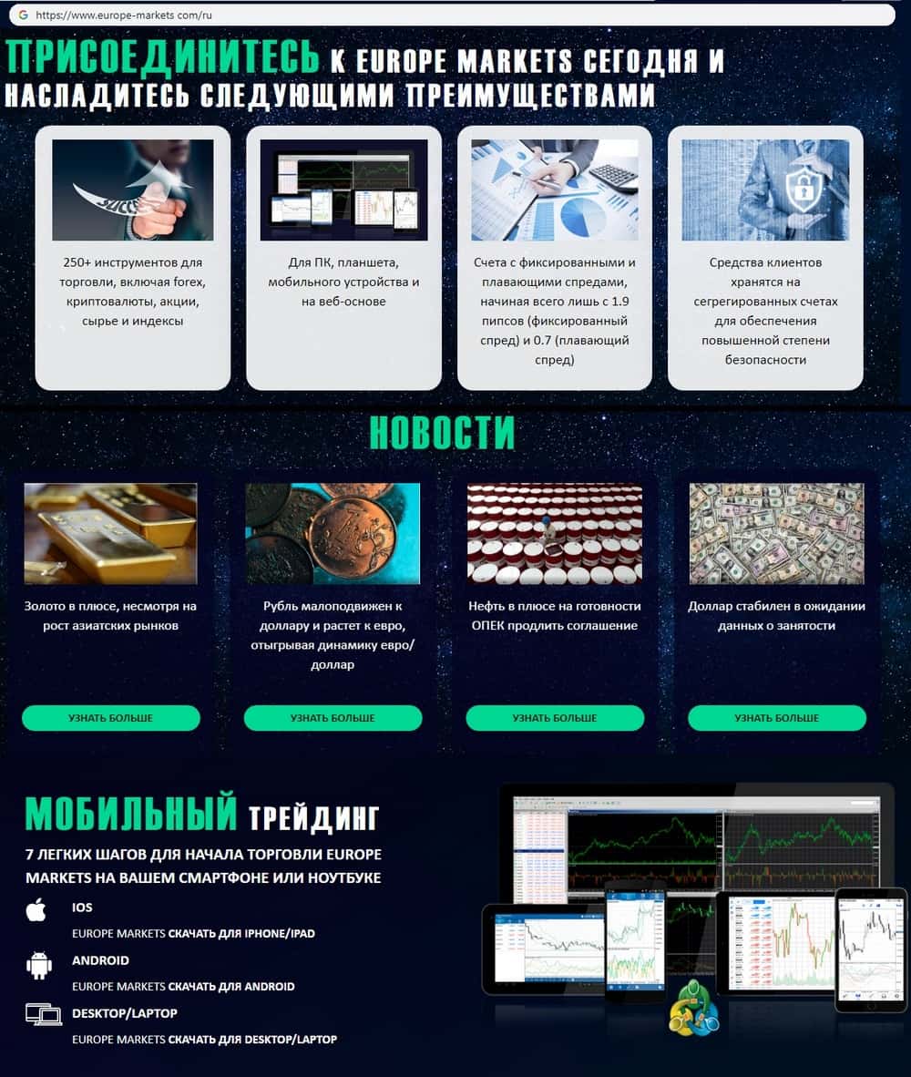 Всё на сайте Европа Маркетс нацелено на развод лохов