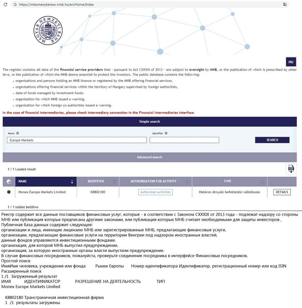 Портал EuropeMarkets – красивая оболочка. Без всякого наполнения. Никаких сведений о лицензии, регуляторе или разрешениях на нем нет. Тщательное расследование на сайте официального регулятора венгерских брокеров MNB показало, что гады работают без лицензии.