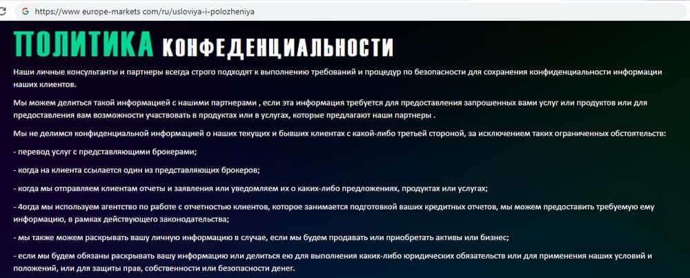 Публикация личных данных клиента: политика конфиденциальности от Европа Маркетс