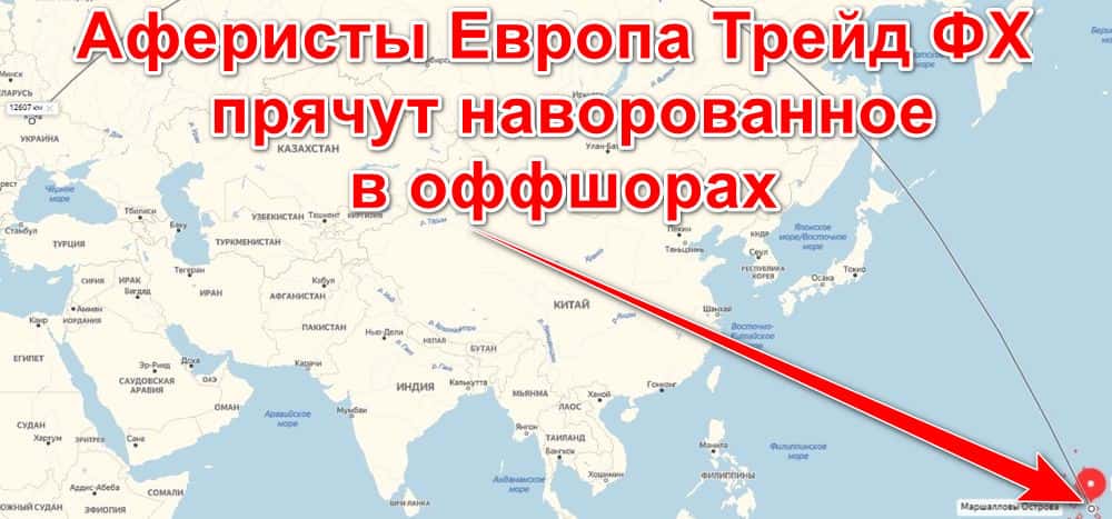 Свои темные дела авантюрная организация Европа Трейд ФХ проводит, прикрываясь оффшорной зоной. Все украденные деньги находятся здесь. Обманутым трейдерам сложно будет их прижать по закону. Адрес незаконного дилингового центра Европа Трейд ФХ: Trust Company Complex, Majuro, MH 96960, Marshall Islands.