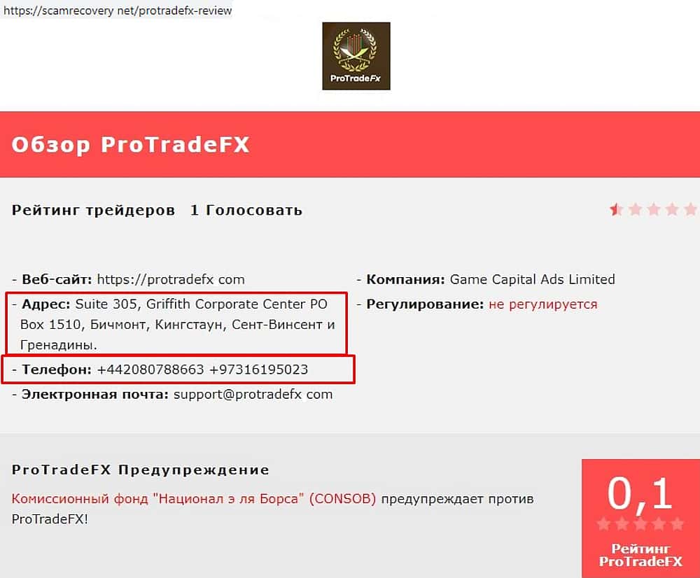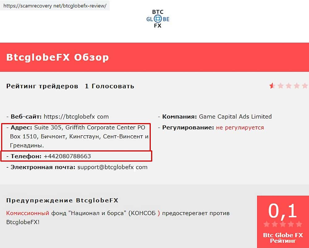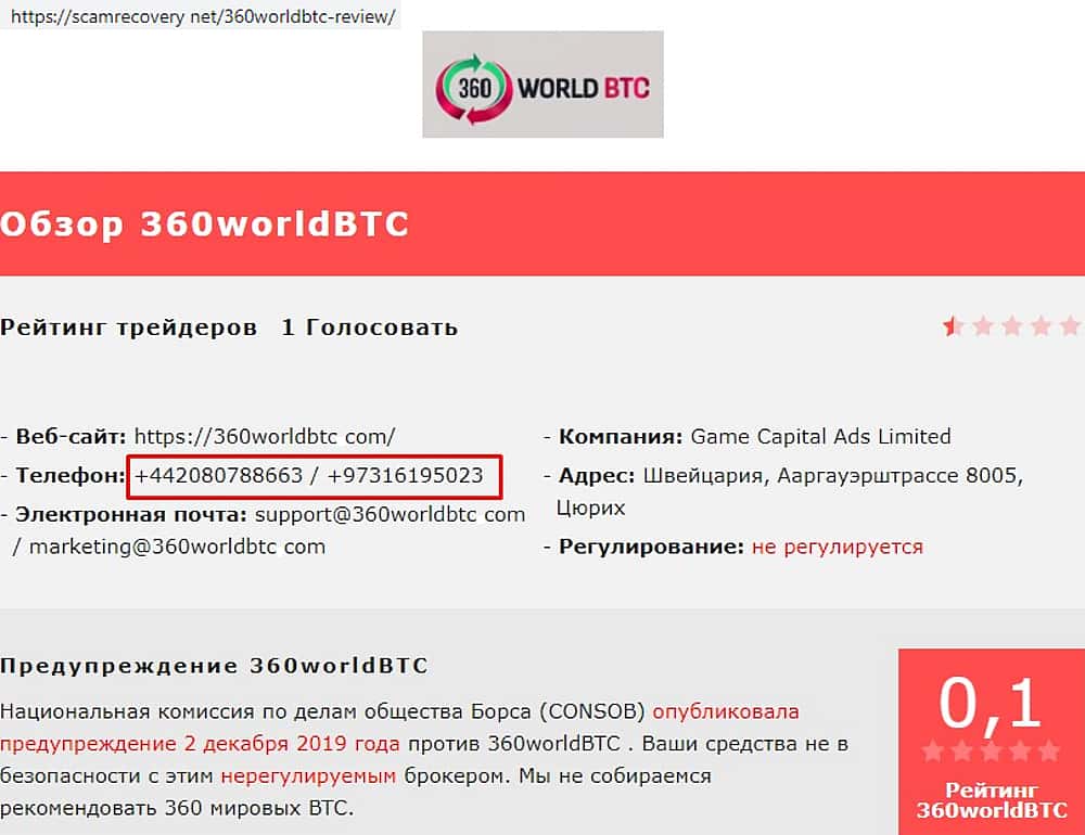 Также номер телефона отъявленных проходимцев Europe Trade FX имеется и у другой неблагонадежной конторы по разводу людей, по информации веб-сервиса scamrecovery net. Но вот адрес уже указан в Швейцарии. И владеет этим всем, судя по всему, одна и та же мошенническая структура Game Capital Ads Limited.