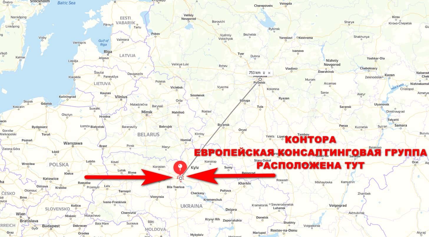 Ниже вы можете ознакомиться с контактными данными шулерской конторы Европейская Консалтинговая Группа, а именно офиса в Киеве: