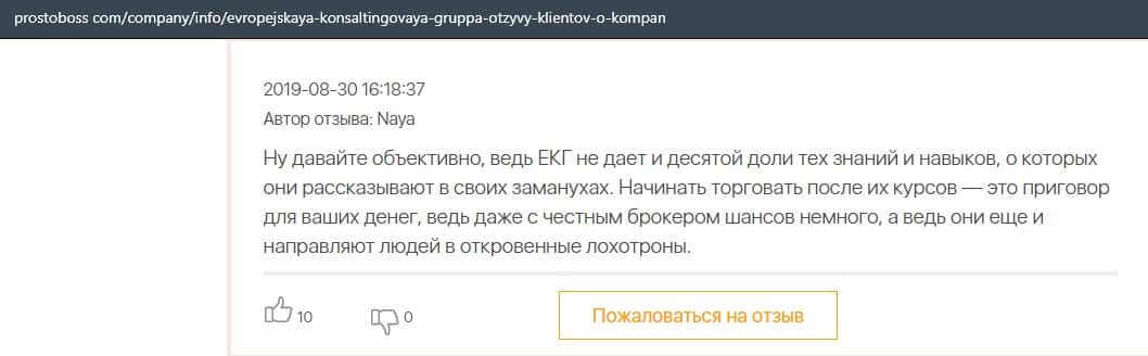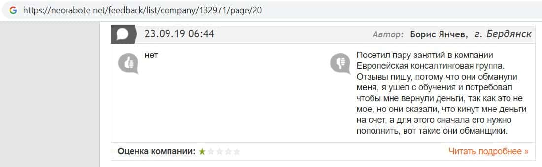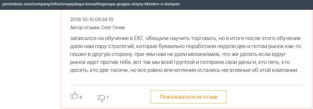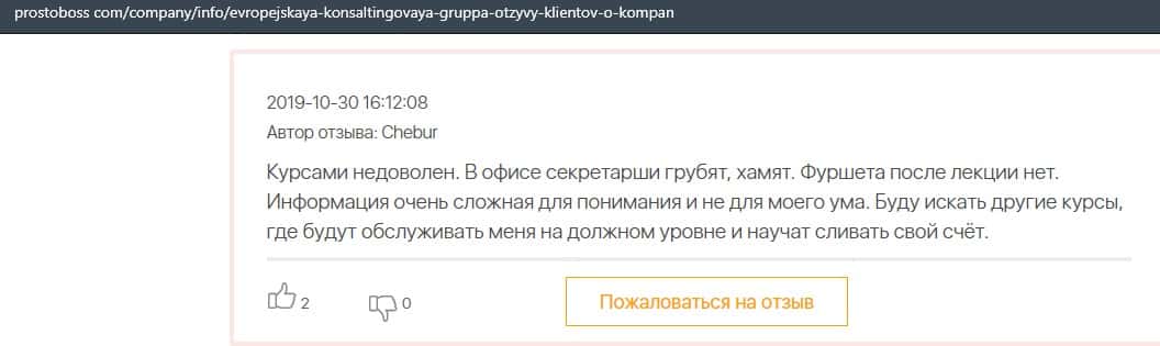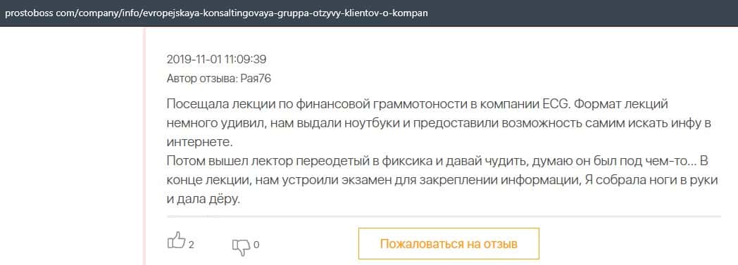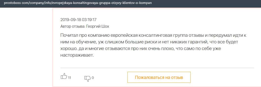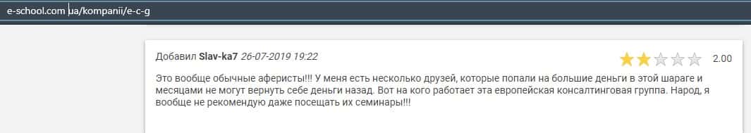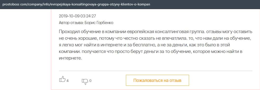 - Негативные отзыв об обучении в Европейская Консалтинговая Группа