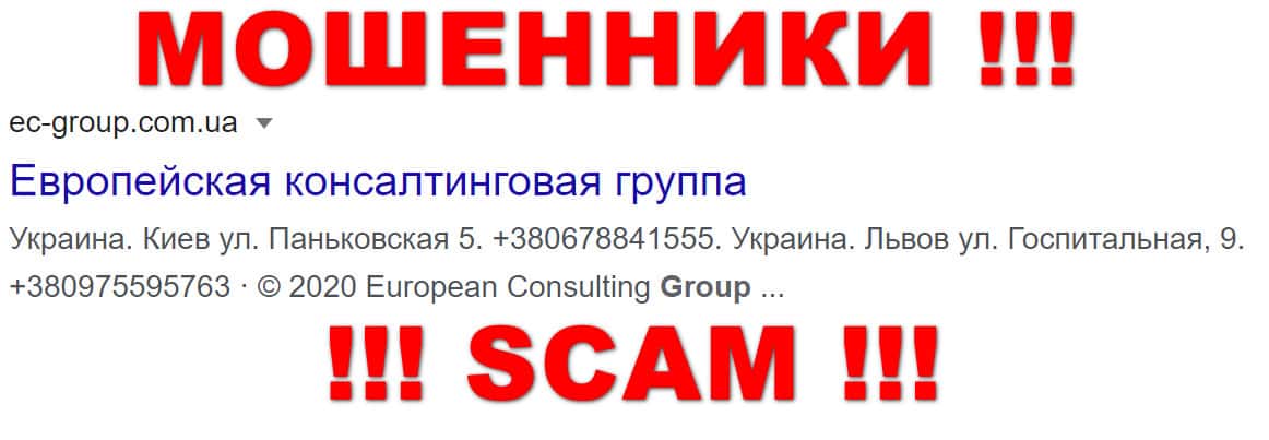 Европейская Консалтинговая Группа - очередная мошенническая консалтинговая контора, которая выступает в качестве связного звена между жертвами развода и оффшорной брокерской кухней Пеллирон. Аферисты попросту сливают туда наивную клиентуру, которую привлекают в офисы в некоторых городах Украины, под видом работодателя, либо проведения обучения торговли на рынке Форекс. Поэтому мы настоятельно не рекомендуем связываться с аферой EC-Group Com Ua.