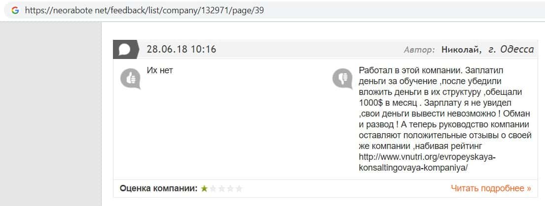 Один из пользователей сообщил, что он не долго сотрудничал с мошенниками EC-Group Com Ua, так как со временем понял, что компания занимается мошенничеством.