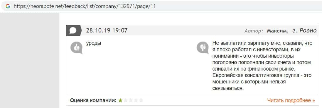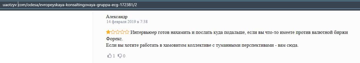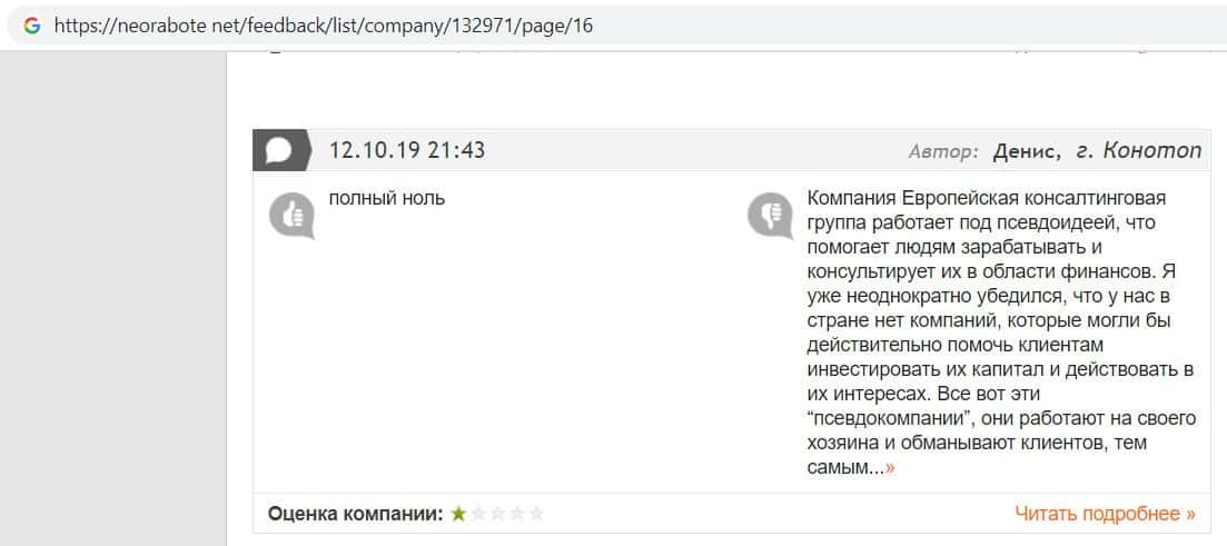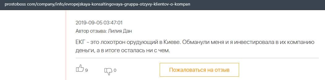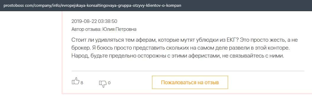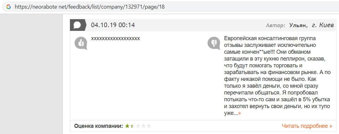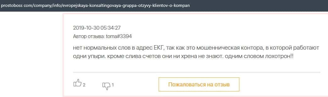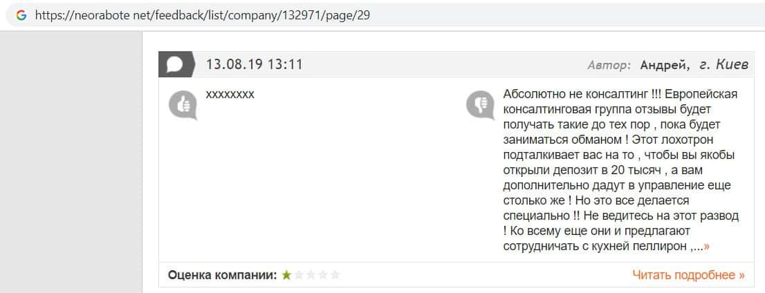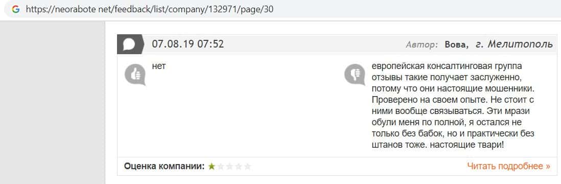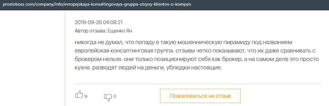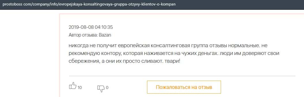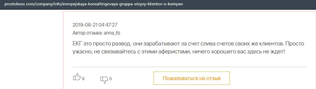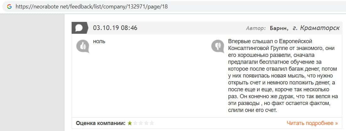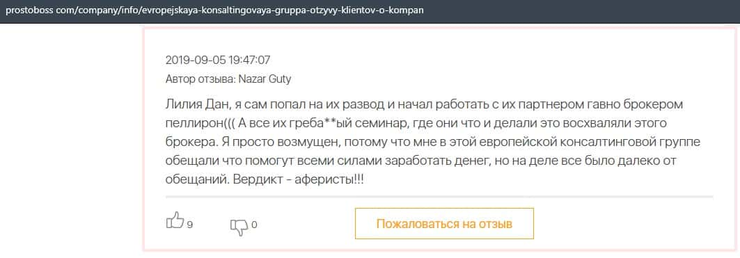 В данном отзыве пользователь сказал, что не знает как назвать компанию Европейская Консалтинговая Группа, так как это просто жулики, который сливают всех свих клиентов.