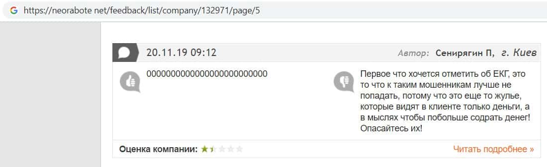 В своём отзыве о мошенниках EC-Group Com Ua пользователь сообщил, что данная фирма является мошеннической, а сотрудники стараются развести развести клиентов на деньги.