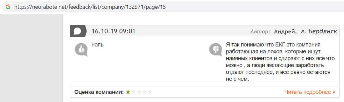 Пользователь интересуется в отзыве о лохотроне EC-Group Com Ua о том, почему другие пользователи ведутся на данную контору мошенников, ведь о ней много негативных отзывов.