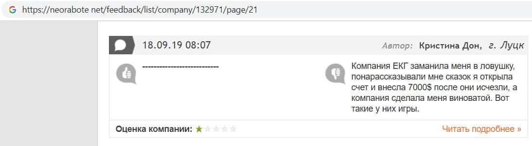 Ещё один пользователь написал, что от конторы EC-Group Com Ua нужно держаться, так как они манипулируют пользователями, обещая им огромную прибыл в короткие сроки.