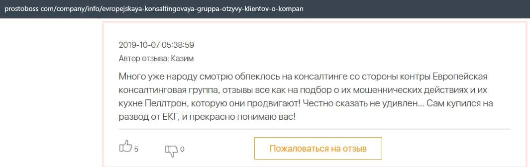В данном отзыве автор вообще не понимает, о чем можно говорить, если лохотрон Европейская Консалтинговая Группа попросту создал проект для поиска клиента в Пеллирон.