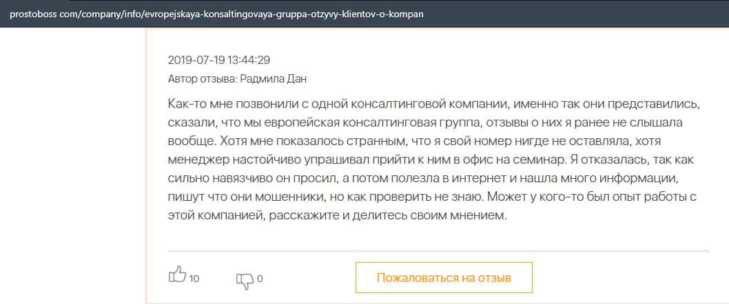 - Аферисты Европейская Консалтинговая Группа заманивают клиентов на семинары