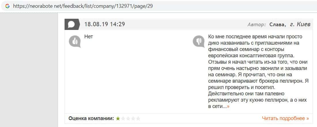 Отзывы о связи EC-Group Com Ua с конторой Пеллирон