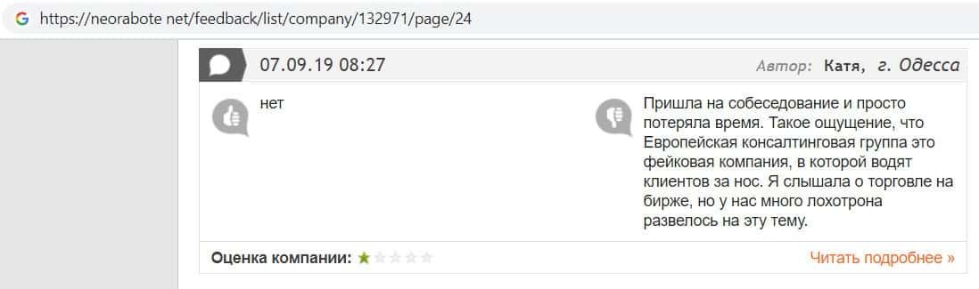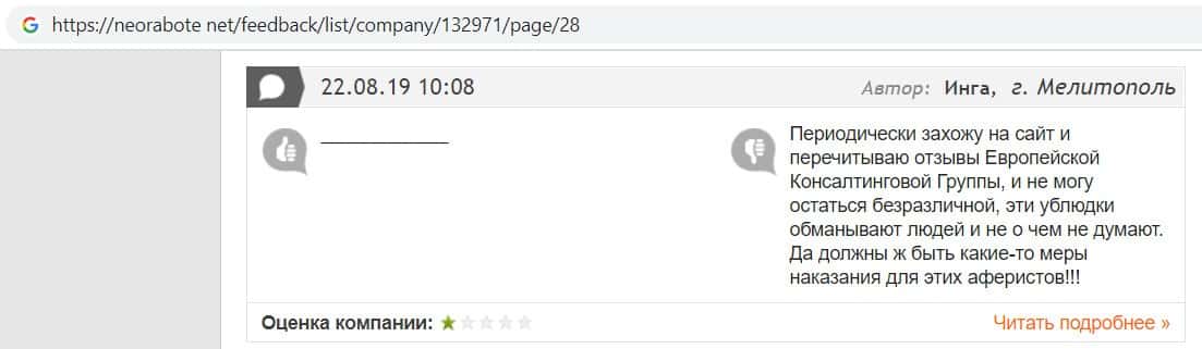 Рассмотрев запросы конторы по этому бренду "Европейская КонсалтинговаяГруппа" аферисты не были запрошены в Гугл ни разу.