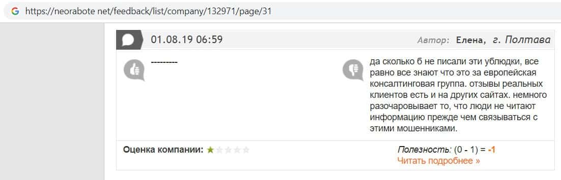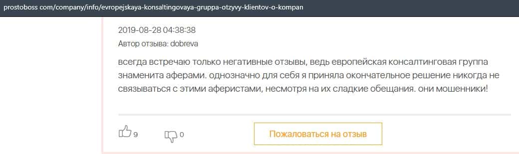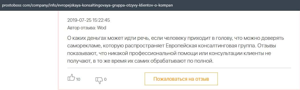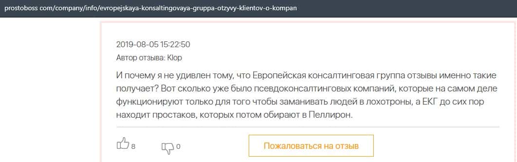 Лохотрон Европейская Консалтинговая Группа темно сотрудничает с конторой Пеллирон, поэтому и получила так много негативных отзывов в интернете.