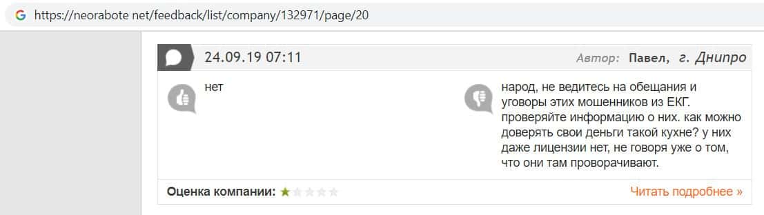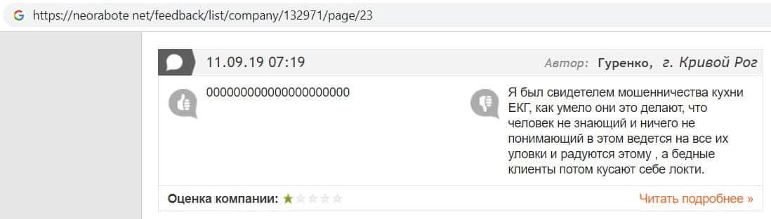 Один из пользователей написал, что компания EC-Group Com Ua является самой примитивной кухней, так как постоянно вытягивает денежные средства у клиентов.