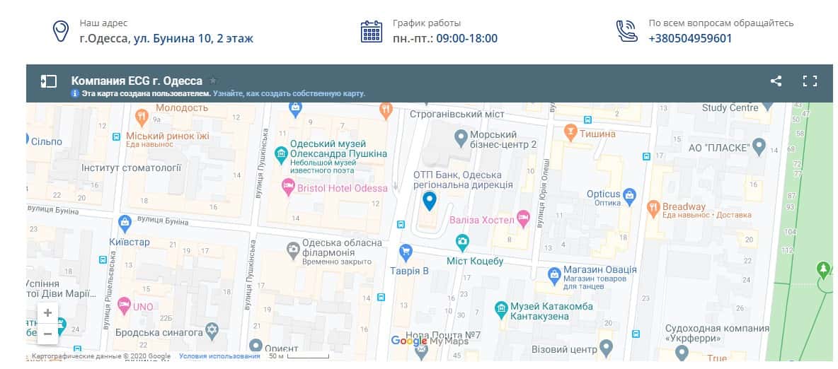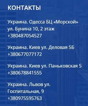 Далее представлены контактные данные мошеннической организации Европейская Консалтинговая Группа, а конкретно их офиса в Одессе: