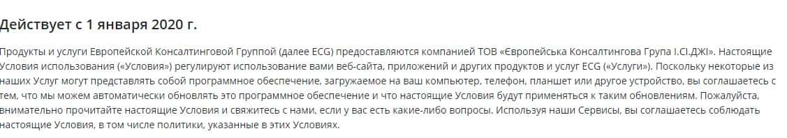 Что касается договора мошеннической организации EC-Group Com Ua, то здесь лохотрон не предоставил ни единого документа по типу пользовательского или клиентского соглашения.