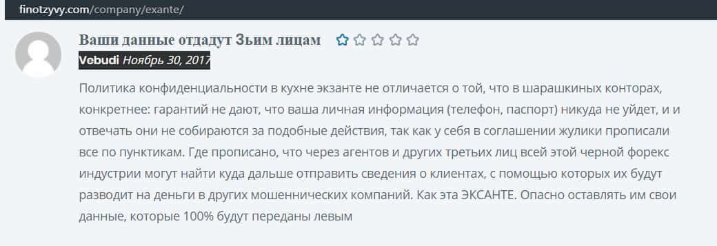 Последующий коммент о том, что каждый интернет-пользователь, открывший счет у брокера Exante, постепенно будет атакован и другими онлайн-аферистами, так как его личные данные будут переданы в другие scam-проекты.