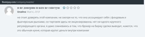 Автор последующего информационного материала в виде коммента, перепечатанного с сайта финотзывы ком, пишет о том, что ДЦ Exante - очередной никем не регулируемый надлежащим образом интернет-проект, главная цель которого, кинуть как можно больше пользователей всемирной сети.