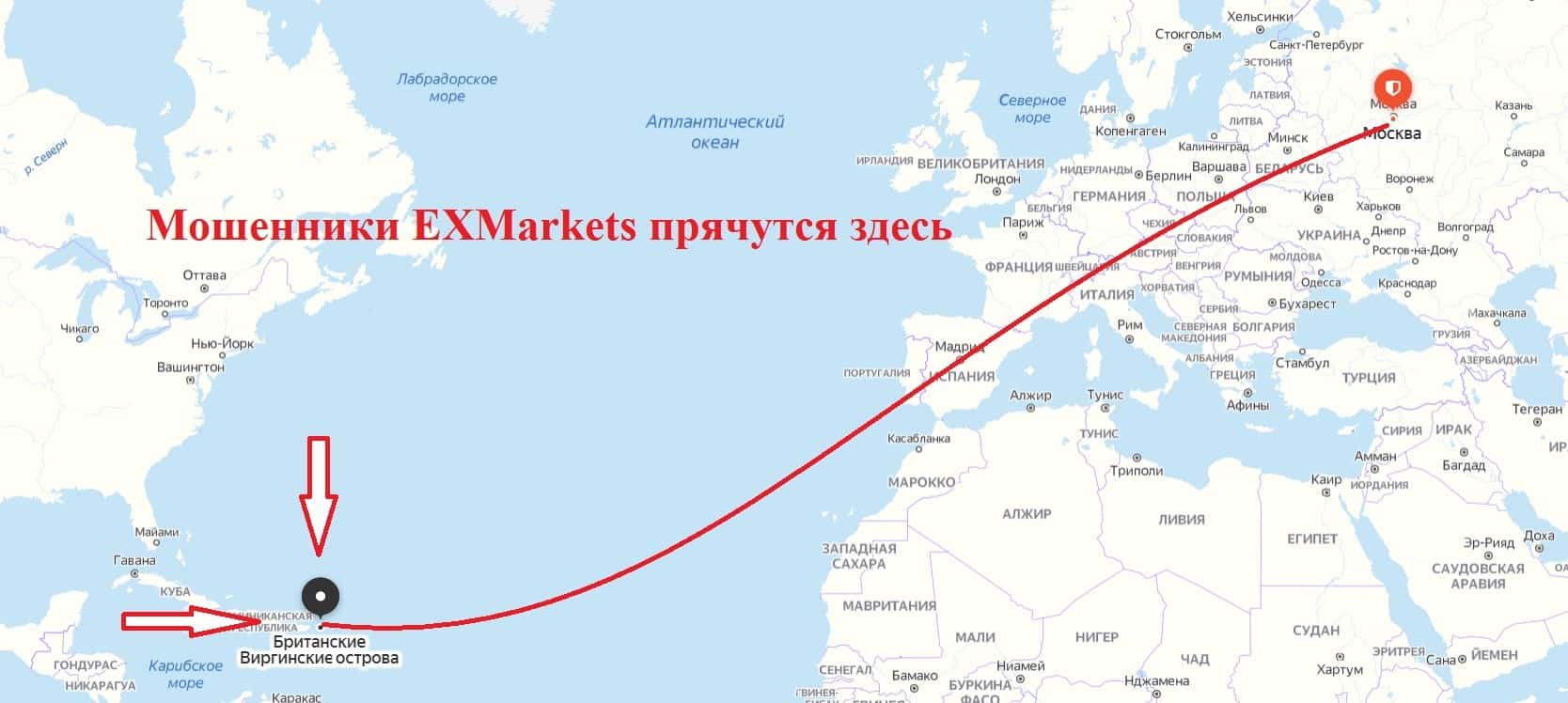 На сайте мошеннической организации EXMarkets указано, что юридическое лицо, которому принадлежит бренд, зарегистрировано на Британских Виргинских островах.