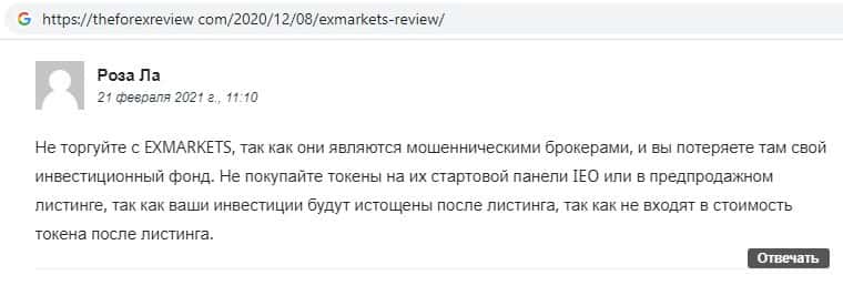 - Отзывы об аферистах ЕХ Маркетс, ныне присутствующие в интернет-сети