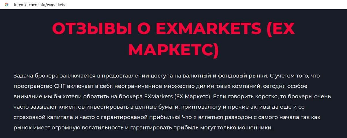 EXMarkets - обзоры скам-организации на других интернет-порталах