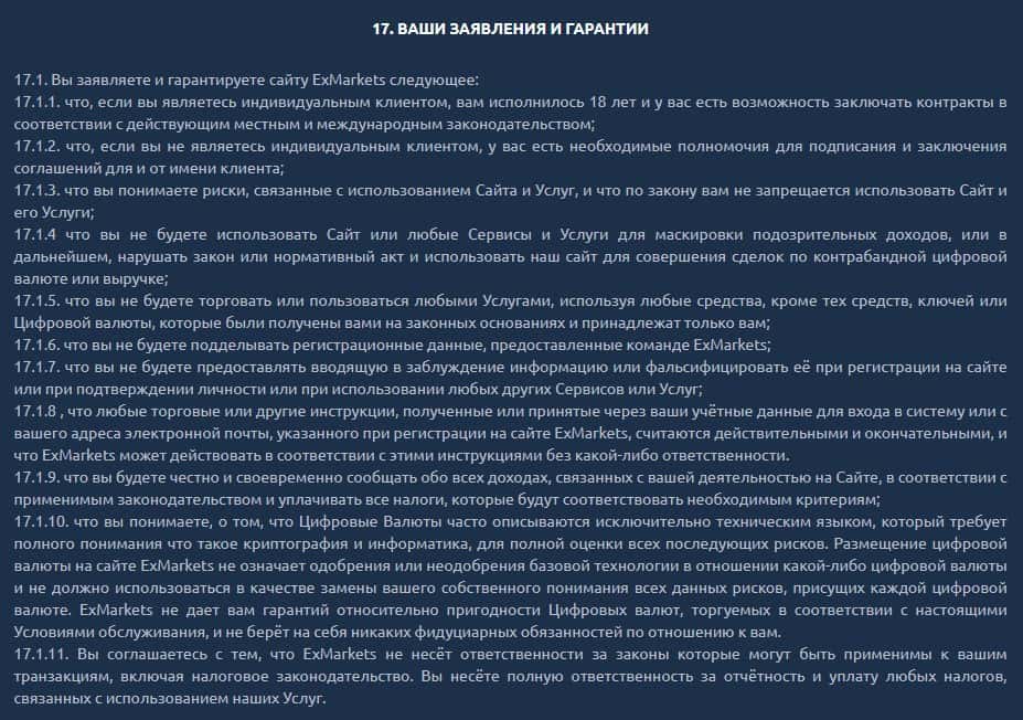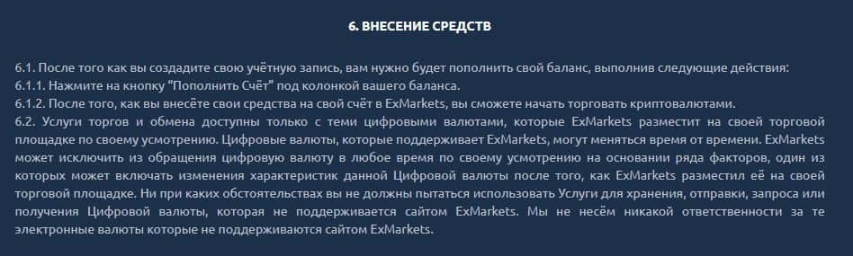 Клиентское соглашение на онлайн-портале аферистов EXMarkets
