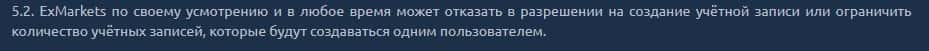 Мошенническая организация ЕХ Маркетс может отказать клиенту в разрешении создания учетной записи без уведомления на это причин.