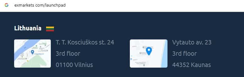 Лохотронщики ЕХ Маркетс указали два адреса местонахождения главного офиса своей компании, которые наверняка вымышленные: