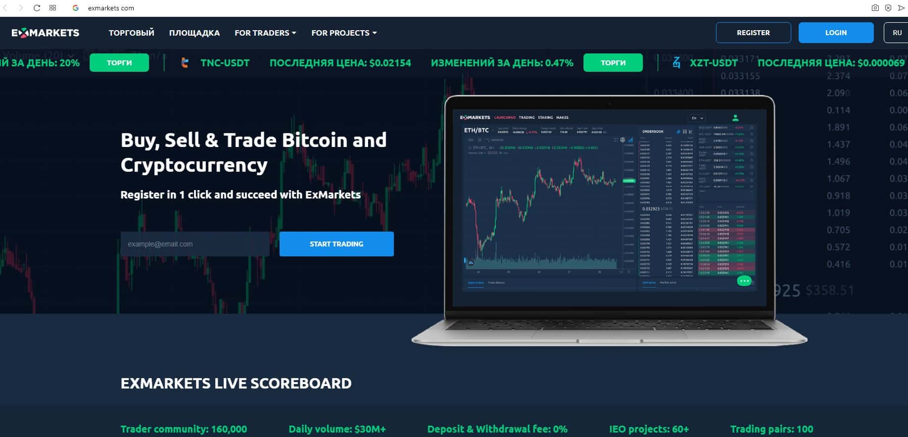 Обманщики EXMarkets предлагают покупать и продавать криптовалюту на своем дырявом сайте, вкладывать свои денежные средства на сайте шулеров не рекомендуем !!!