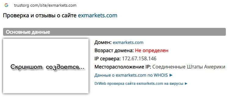 Возраст домена скам-компании ЕХ Маркетс определить невозможно