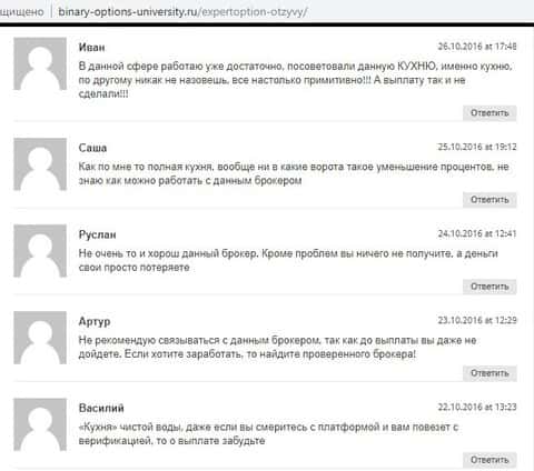 Ряд отзывов о кухонной деятельности мошенника Эксперт Опцион