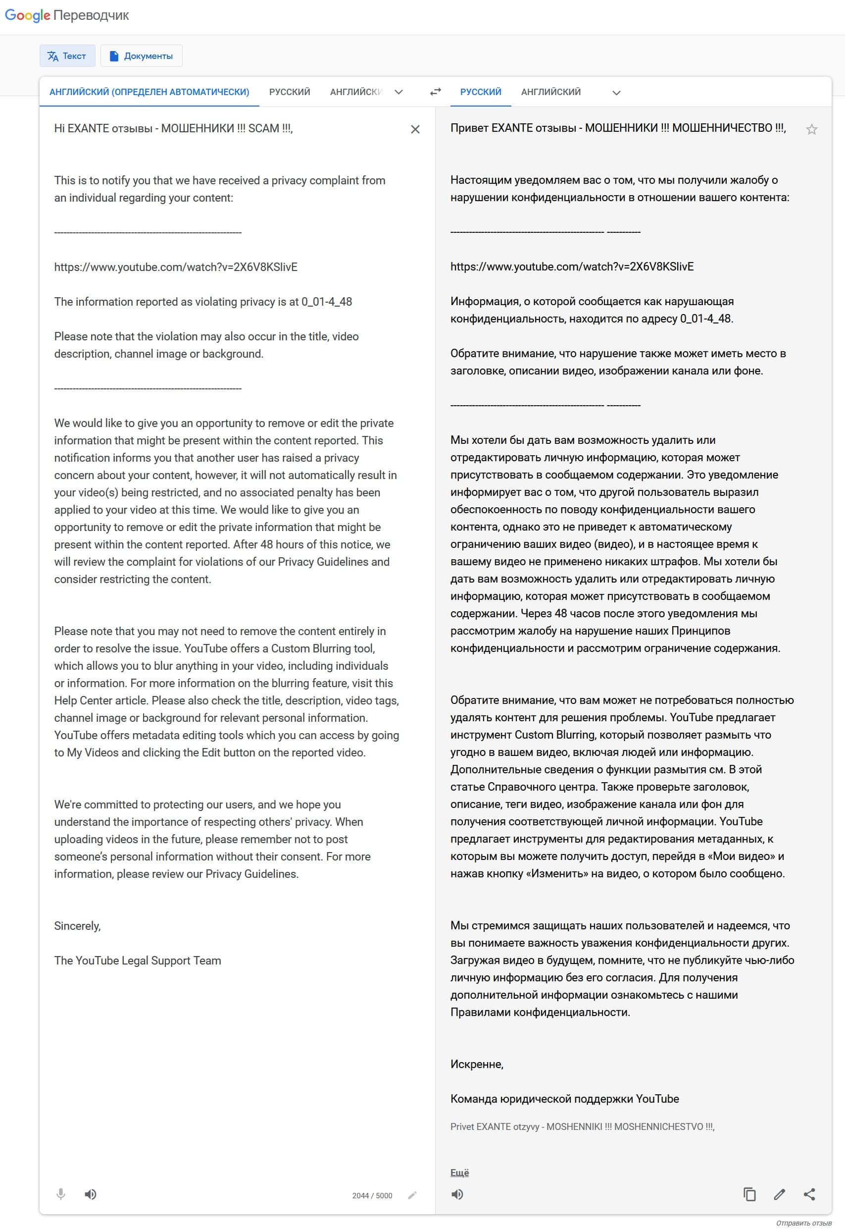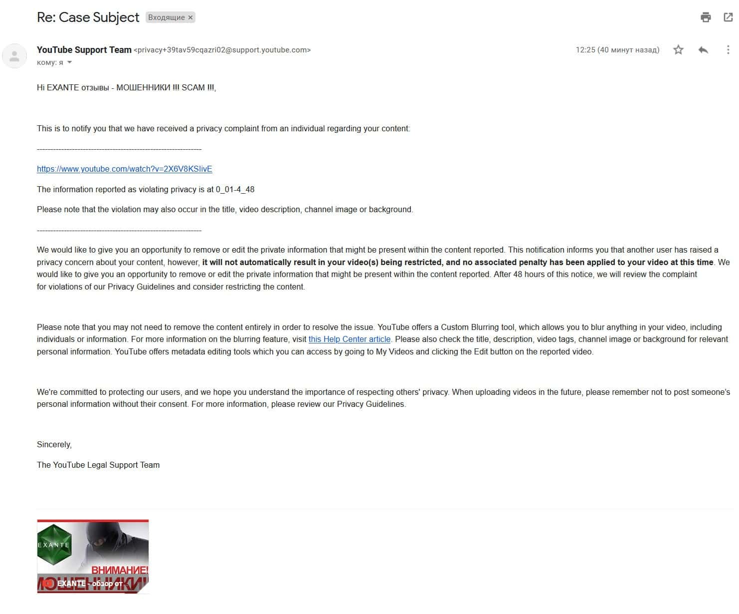 Мошенники EXANTE хотят удалить видео, разоблачающее их деятельность