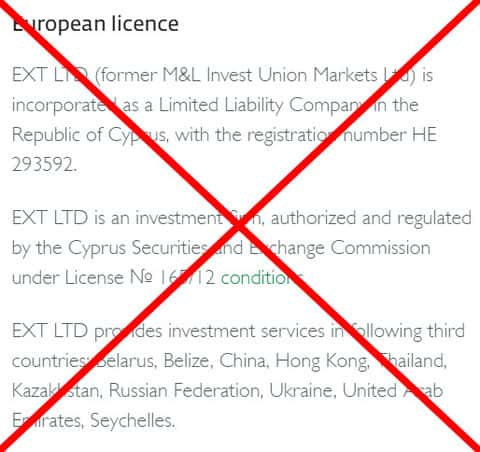 На своем сайте, аферисты разместили также лицензию на ведение своей деятельности. Само разрешение выдано Кипрским регулятором CySEC, и в этом есть свой подвох. Данная лицензия дает право вести деятельность исключительно на территории Кипра, но ни как не на территории России и Украины.