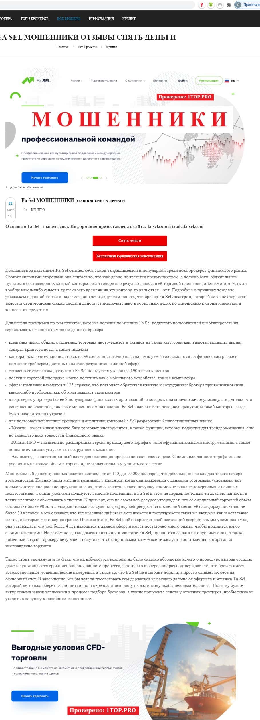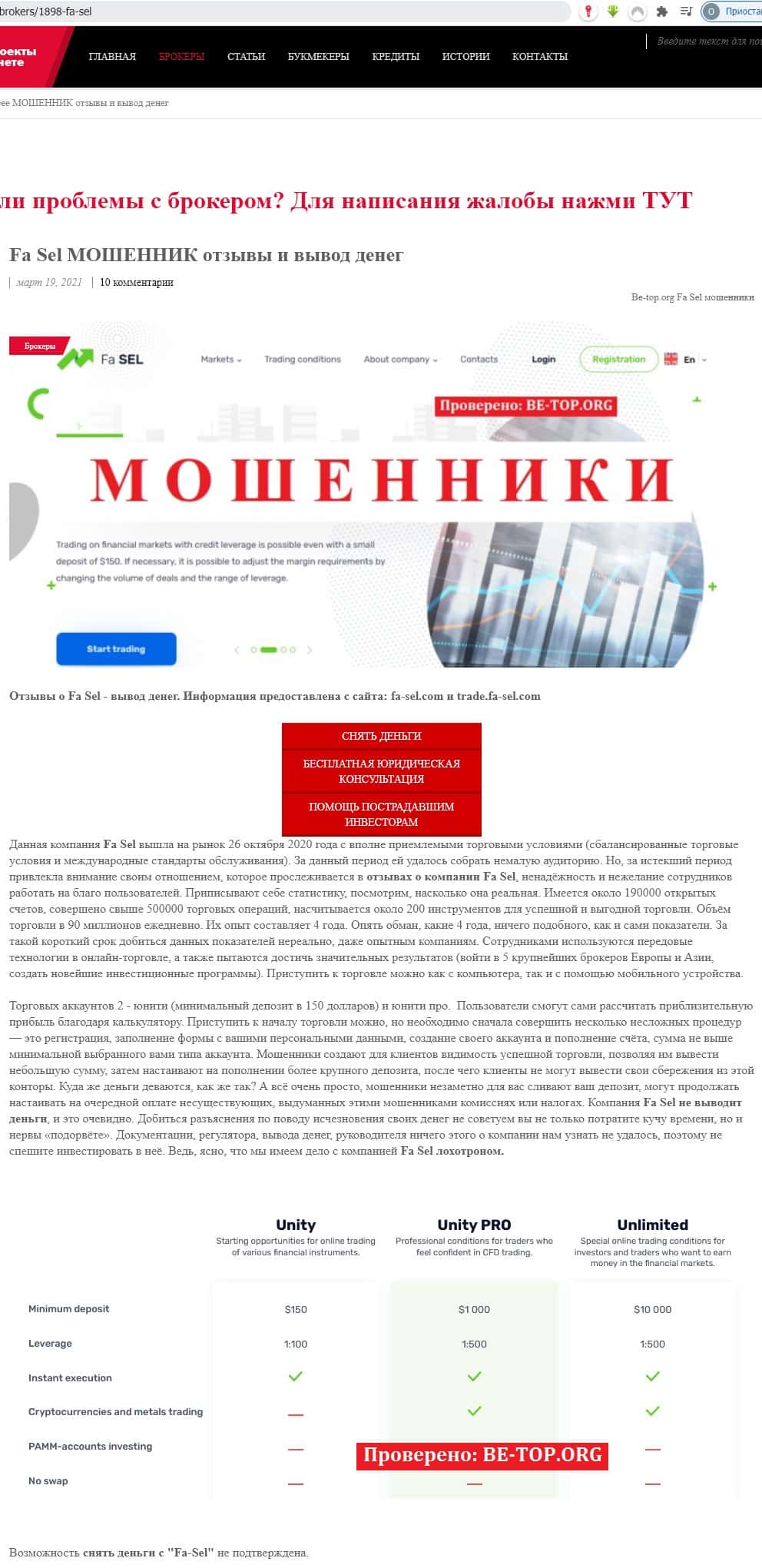 Портал be-top org содержит массу отзывов клиентов брокерской шараги Фа Сел с одним единственным посылом: "Брокер Фа Сел не выводит деньги!"