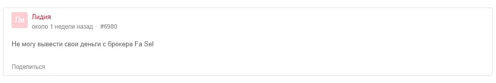 - Отзывы клиентов брокера Фа Сел о отсутствии на торговой платформе вывода
