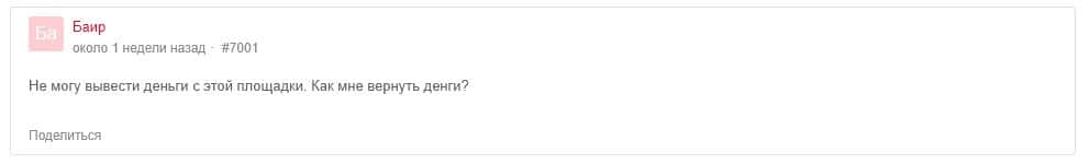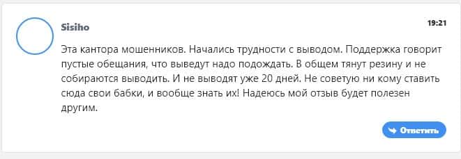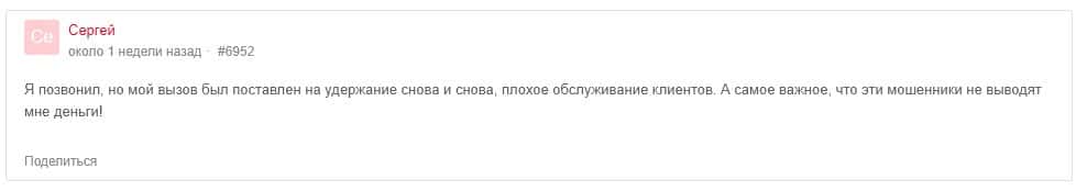 С проблемой технической поддержки столкнулся и клиент этой торговой площадки, оставивший свой отзыв на портале be-top org, которому просто не отвечают и не выводят деньги.