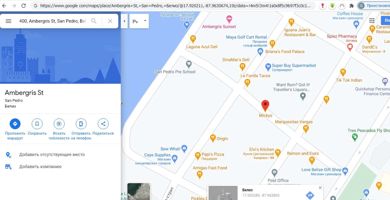 Сервисы Google то же не находят полного совпадения адреса, но их информация уже "теплее". Вот только непонятно, как на короткой улице домов максимум в двадцать появился номер 400?