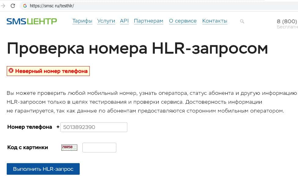 smsc ru testhlr - сервис проверки телефонных номеров посредством HLR-запроса
