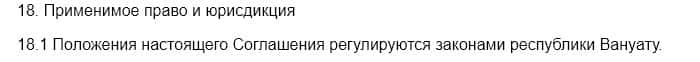 При рассмотрении пунктов о юрисдикции брокерской компании Фа Сел, напоминаем: расположенную в Белизе, откуда-то выплывает применение законодательства Республики Вануату.