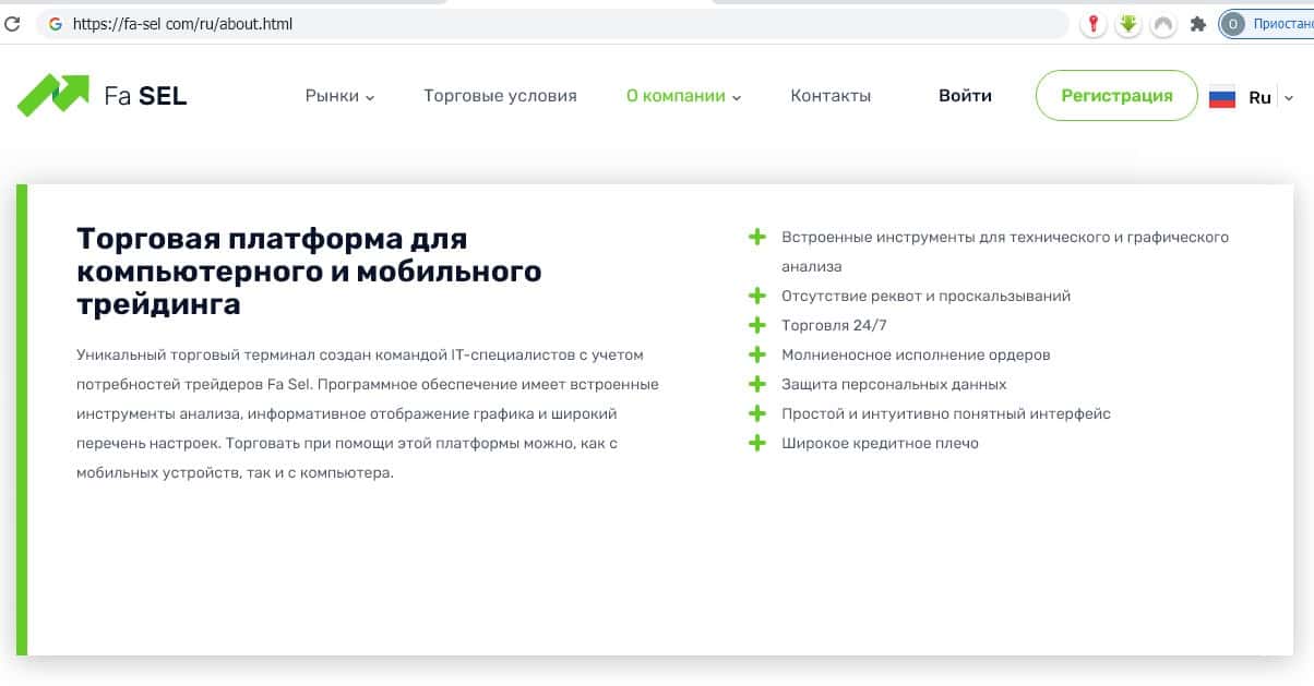 - О торговой платформе на брокерской площадке Фа Сел
