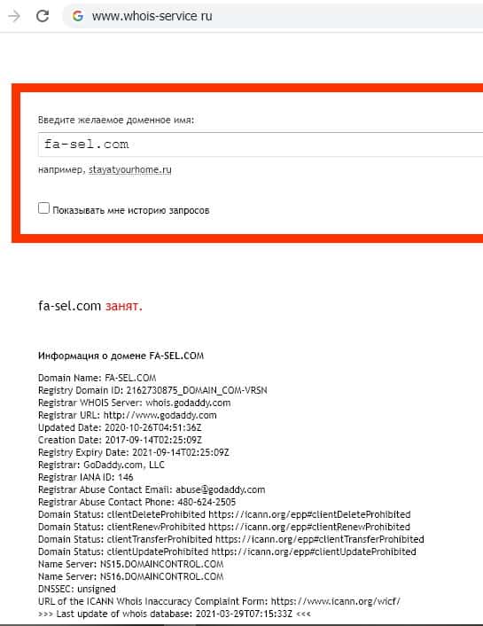 - На кого зарегистрирован домен мошеннического портала брокера Фа Сел?