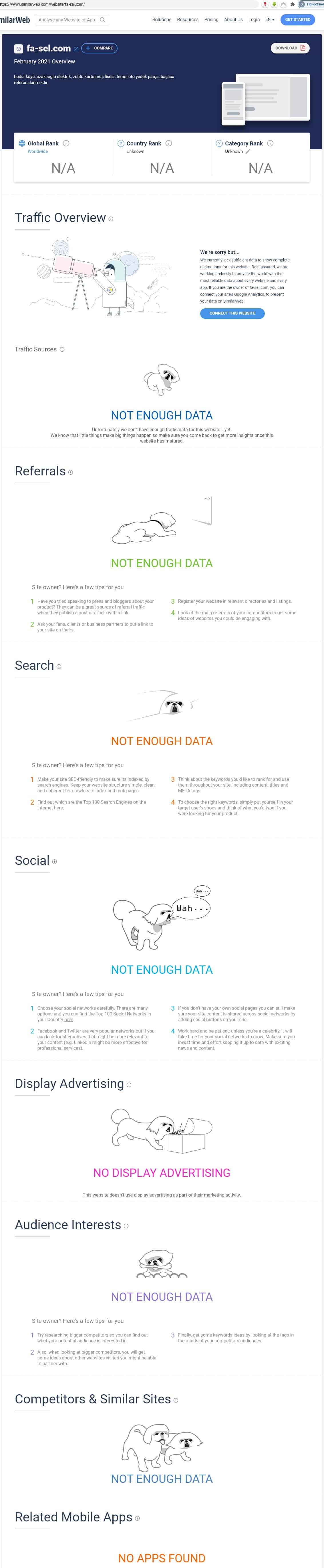 При рассмотрении портала брокера Фа Сел сервис анализа сайтов similarweb ни по одной категории не выдаёт каких-нибудь внятных результатов. Причиной тому низкая популярность этого лохотрона.