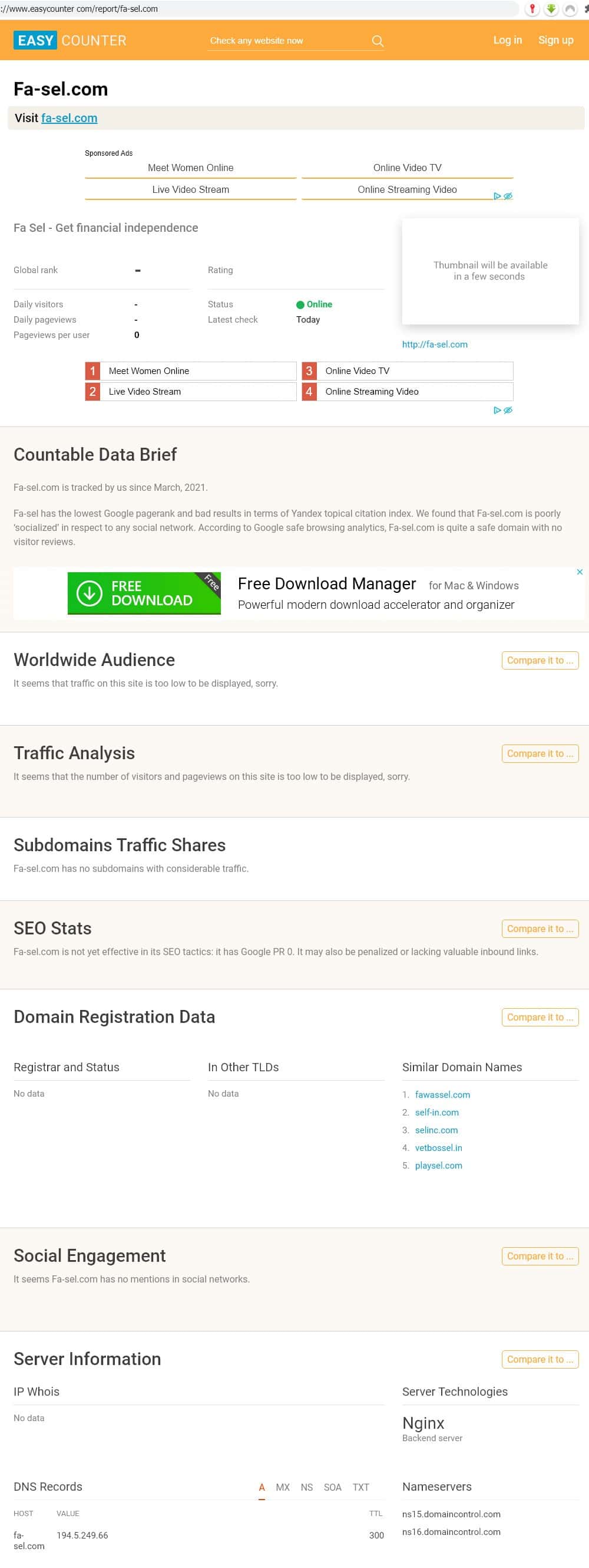 Не проливает свет на показатели деятельности и характеристики трафика шулерской конторы Фа Сел и попытка его анализа, проведенная службами портала easycounter.