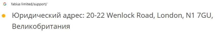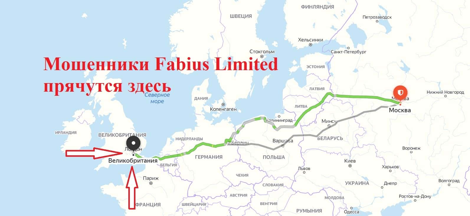 Сведения о месте регистрации Fabius Limited - фейк, так как большинство проектов у себя на сайте указывают адрес на территории Великобритании в качестве приманки.