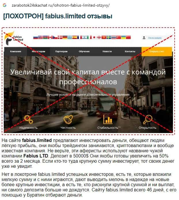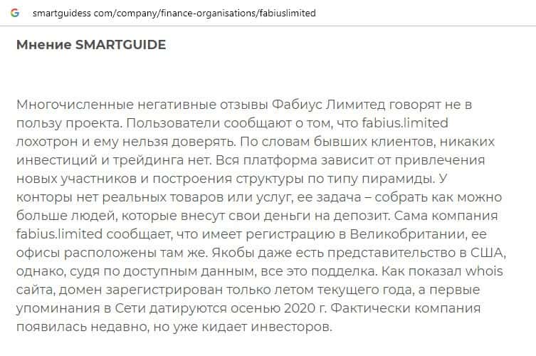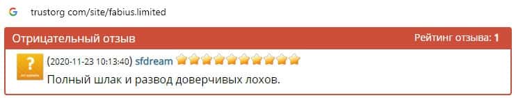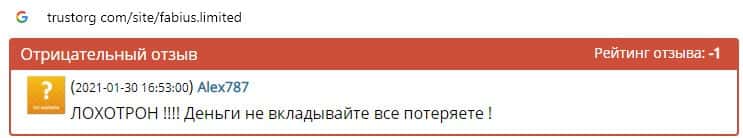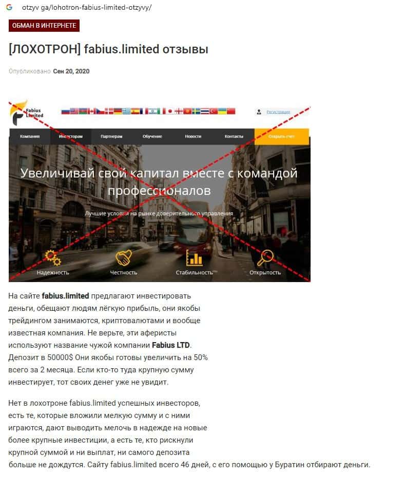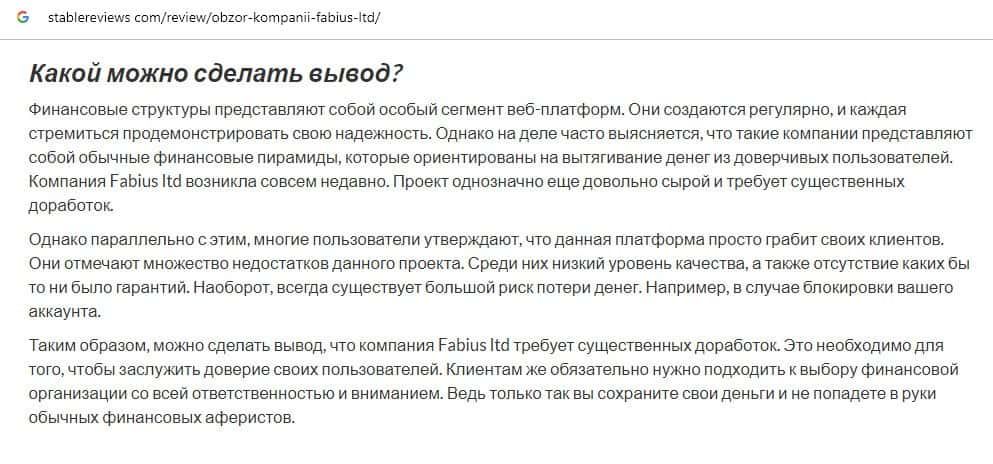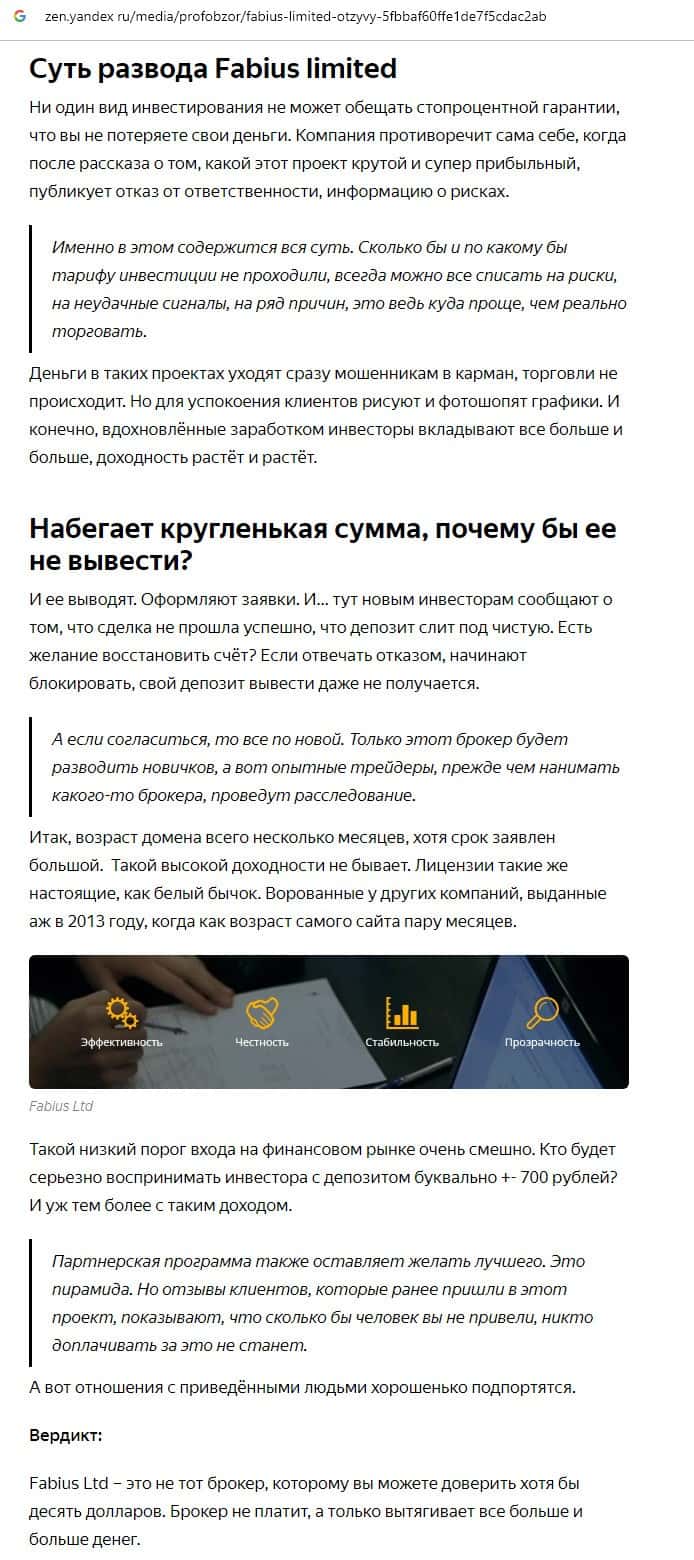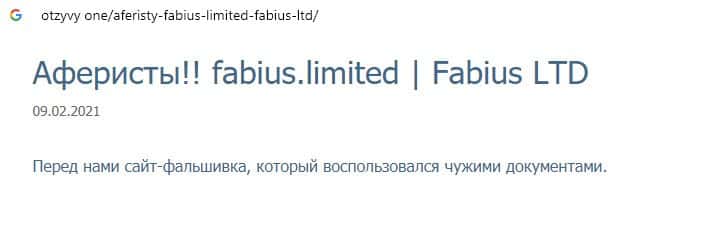 - Fabius Limited - обзоры скам-организации на других веб-ресурсах