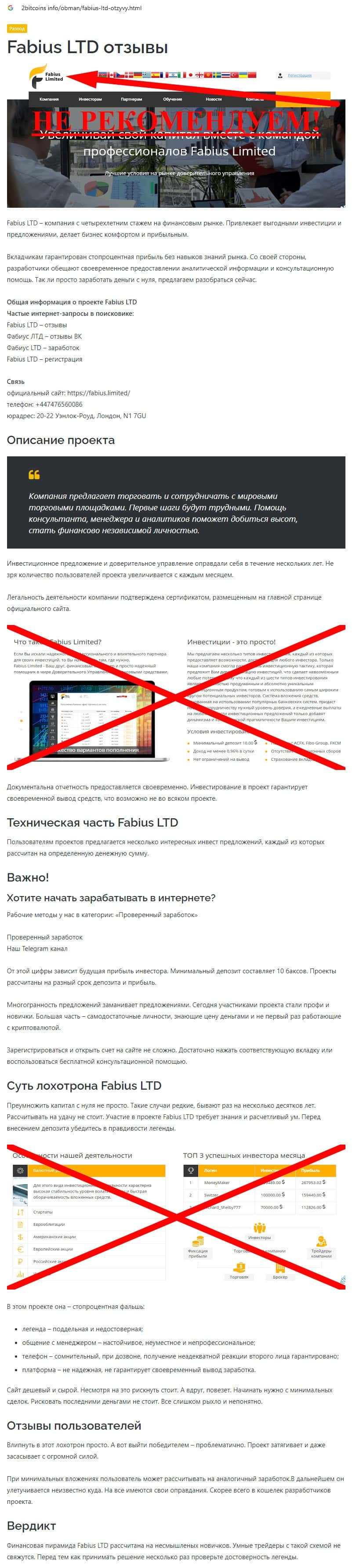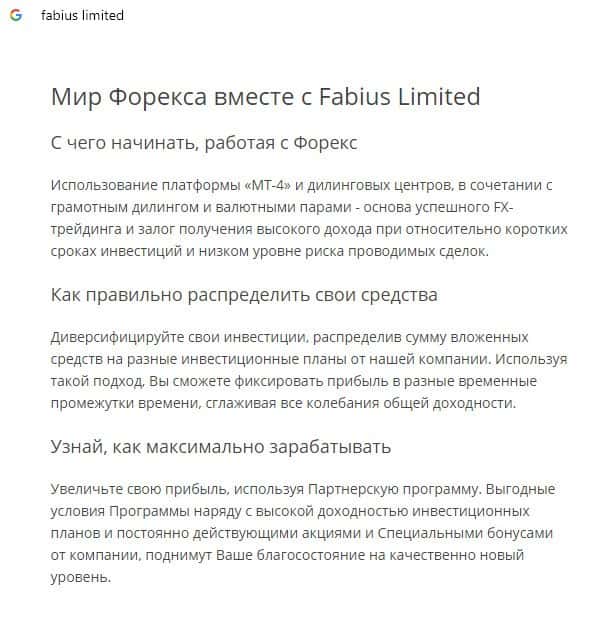 - fabius limited - официальный онлайн-ресурс аферистов Фабиус Лимитед