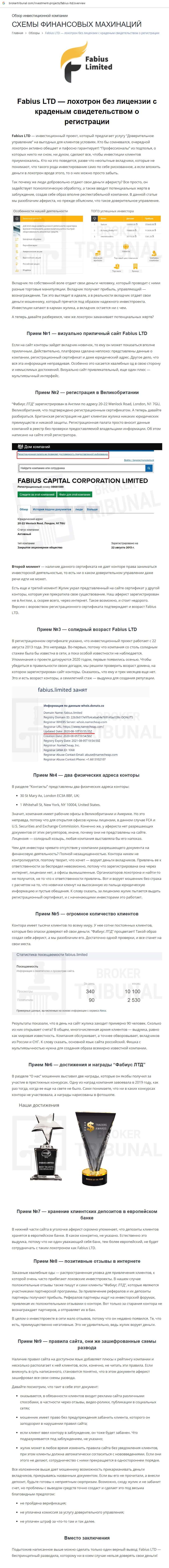 Ниже предлагаем ознакомиться с информацией о схеме развода со стороны жульнической конторы Фабиус Лимитед, которая лишь обещает прибыль.