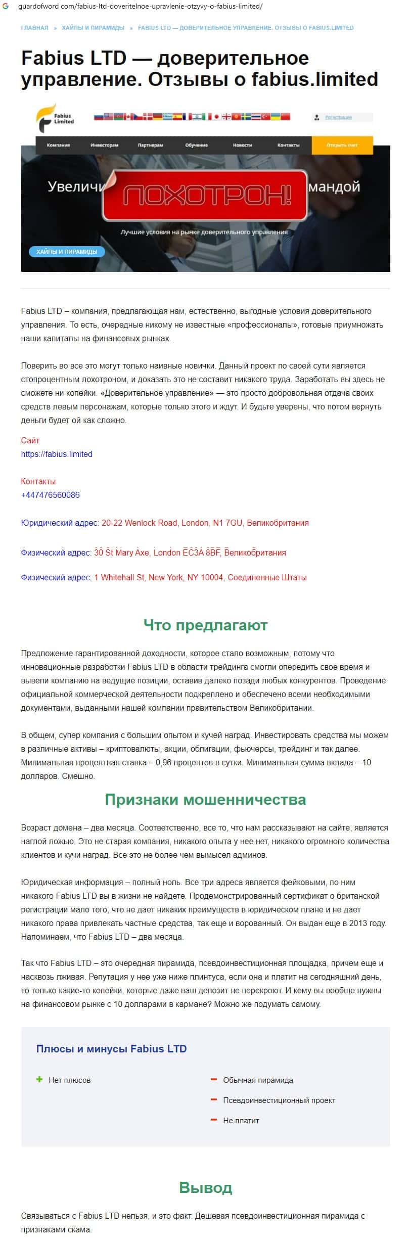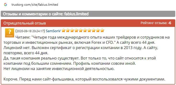 Fabius Limited - обзоры скам-организации на других веб-ресурсах
