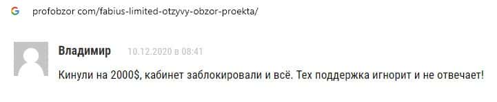 - Отзывы об обманщиках Фабиус Лимитед, ныне присутствующие в сети-интернет